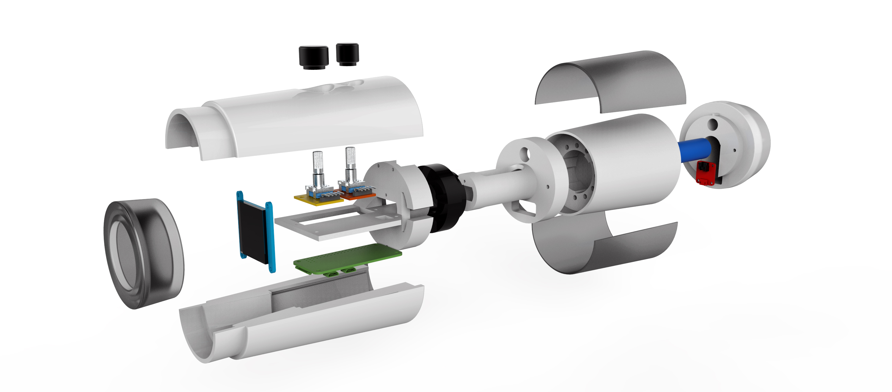 Chronoscope enables users to interact with their photo archive through three rotational controls on viewing directions, timeframe modes and viewing granularity. When peering into Chronoscope, a single photo tied to the specific time that it was taken (based on its timestamp metadata) will be visible. A rotating wheel, as the scope’s main feature, controls two directions: navigating forward and backward in time within the selected timeframe mode. Navigating in a timeframe mode occurs through a rotational movement (clockwise to move forward in time and counterclockwise to move backward). We selected physical rotation for this input as a subtle analogy to the circular shape of clocks and the temporal flow evoked by their movement. By rotating in either direction, the user sees each photo from a wide spectrum of other photos in the archive. When the user stops the rotation, the Chronoscope settles on the specific photo associated with where ‘in time’ the position is about the selected timeframe mode. When switching the bigger knob on the side of the scope, users can seamlessly toggle between different temporal organizations of their archive through three timeframe modes (linear, date, and time). When a new mode is selected, the center photo in view does not change, while the surrounding photos are replaced with ones from the new timeframe.