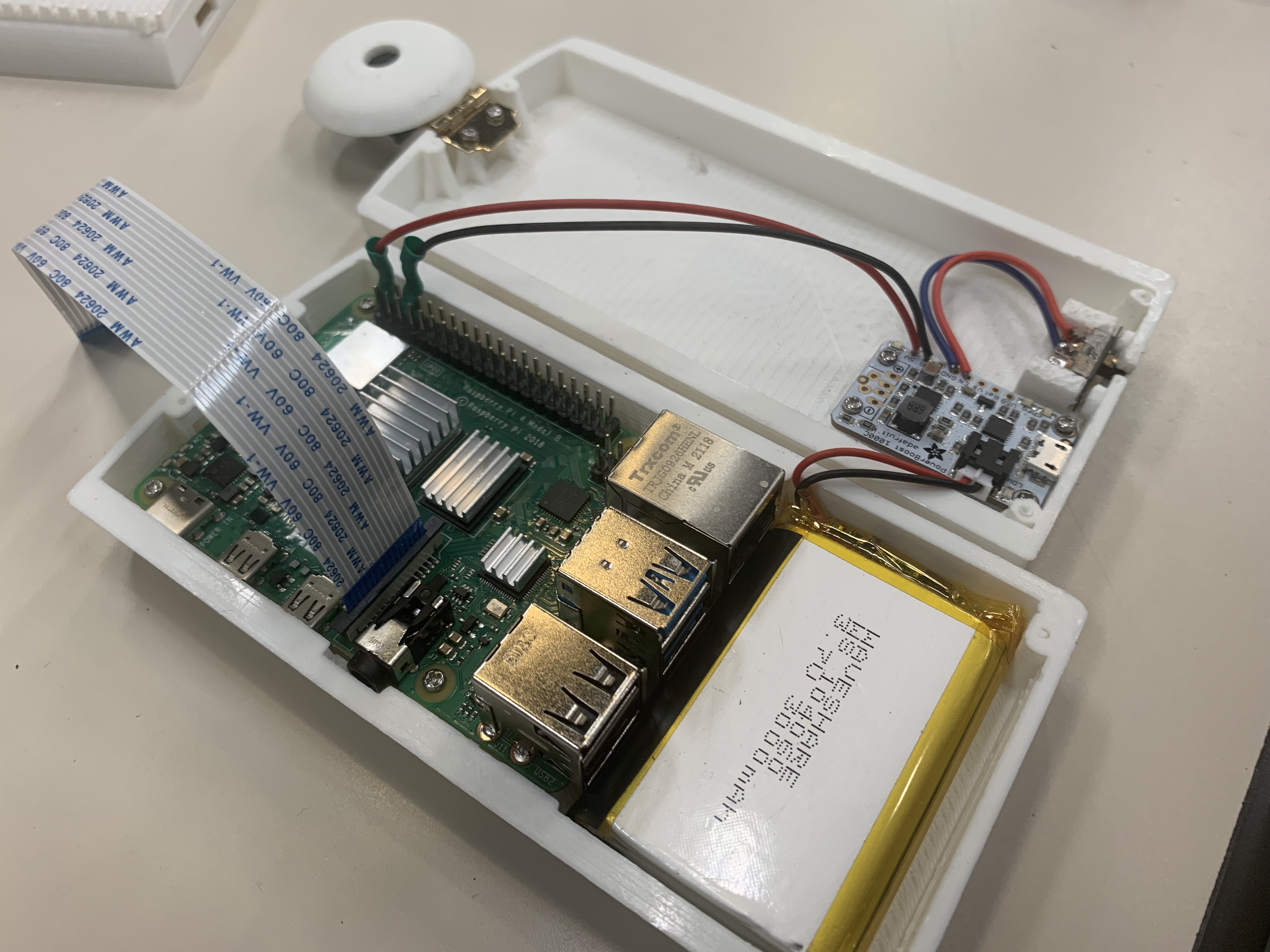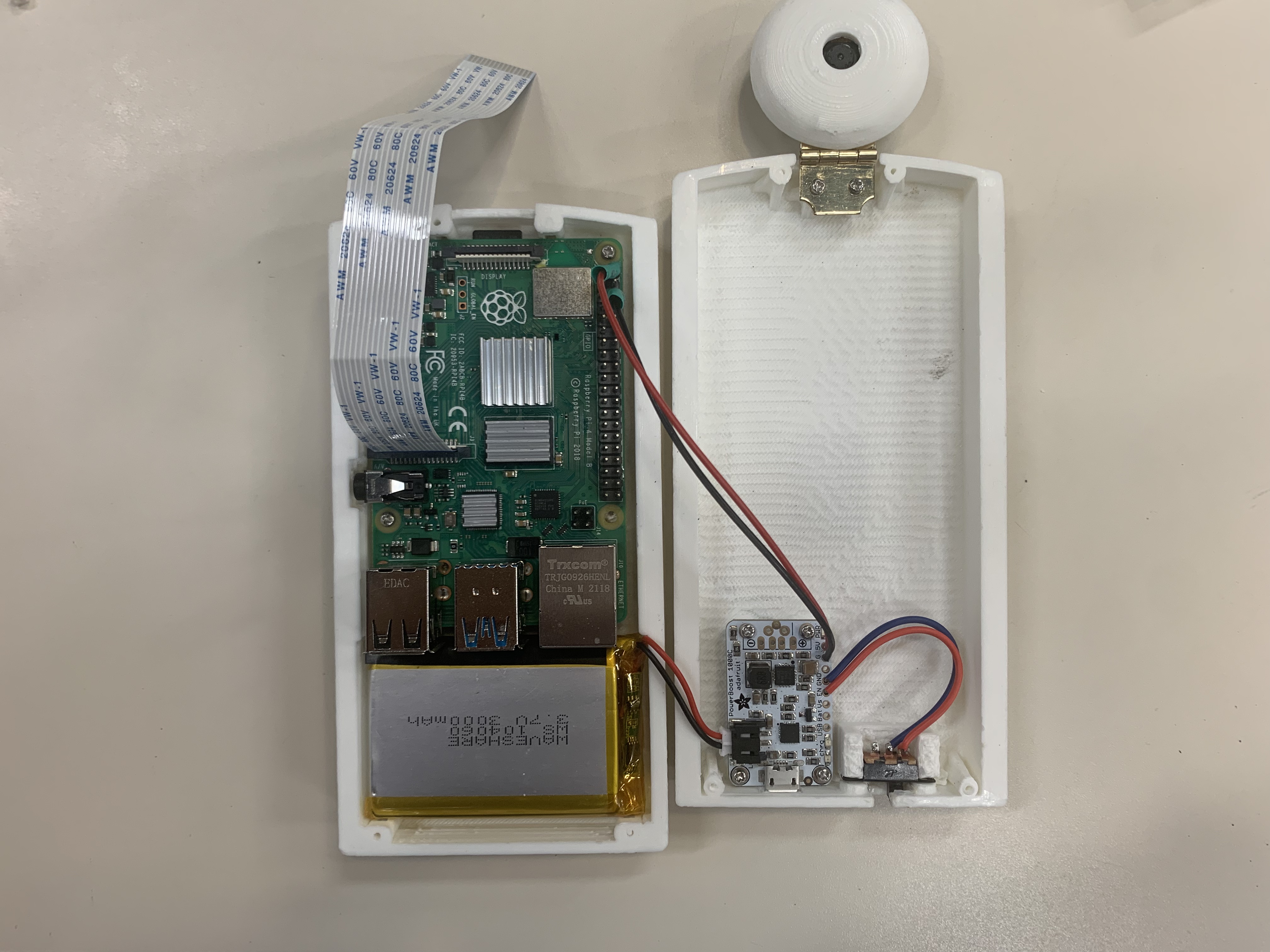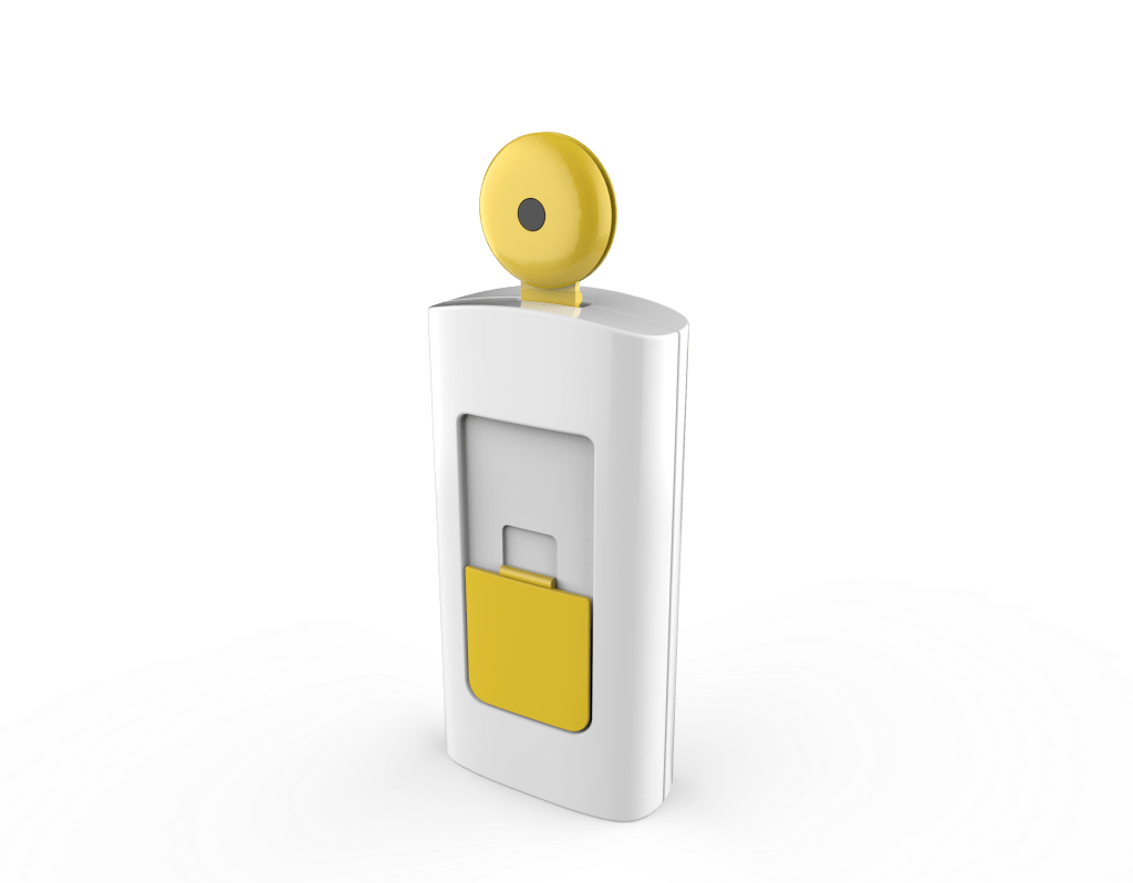 1) External Camera (4): Inspired by the small disc-shaped resonator of a stethoscope, we designed a rounded form to highlight the camera’s position. We adopted a hinge to connect the body and the camera component. Users can rotate the hinge to get the desired camera orientation. We also designed a form enclosure to enhance its flexibility. The base of Dr.’s Eye is fat so users can place it on the table surface. We intentionally added heavy-duty reusable tape on two sides of the form enclosure, so users can also stick Dr.’s Eye onto vertical surfaces, such as a wall. In addition, we designed the enclosure to be rounded to fit into a user’s palm. The finalized form enclosure was designed with a slight anthropomorphic look to create a sense of accompaniment and to signal that the video stream would be delivered to a professional party in an appropriate context. We produced one set of Dr.’s Eye by 3D-printing the final assembly. We used white-coloured PLA material to print the form enclosure as it offers minimalist aesthetics and endurance for the study.
