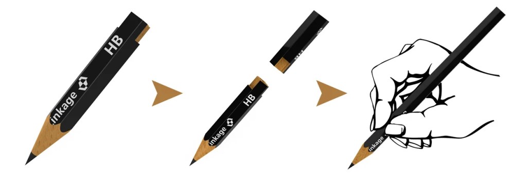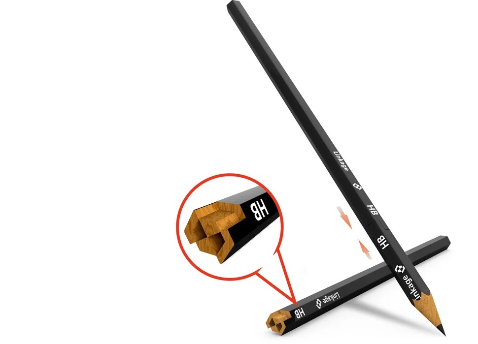 Linkage pencil actualizes resource-saving by optimizing the traditional Chinese mortise and tenon joint structure of one end of the traditional pencil, which helps us save more resource and reduce contamination.
