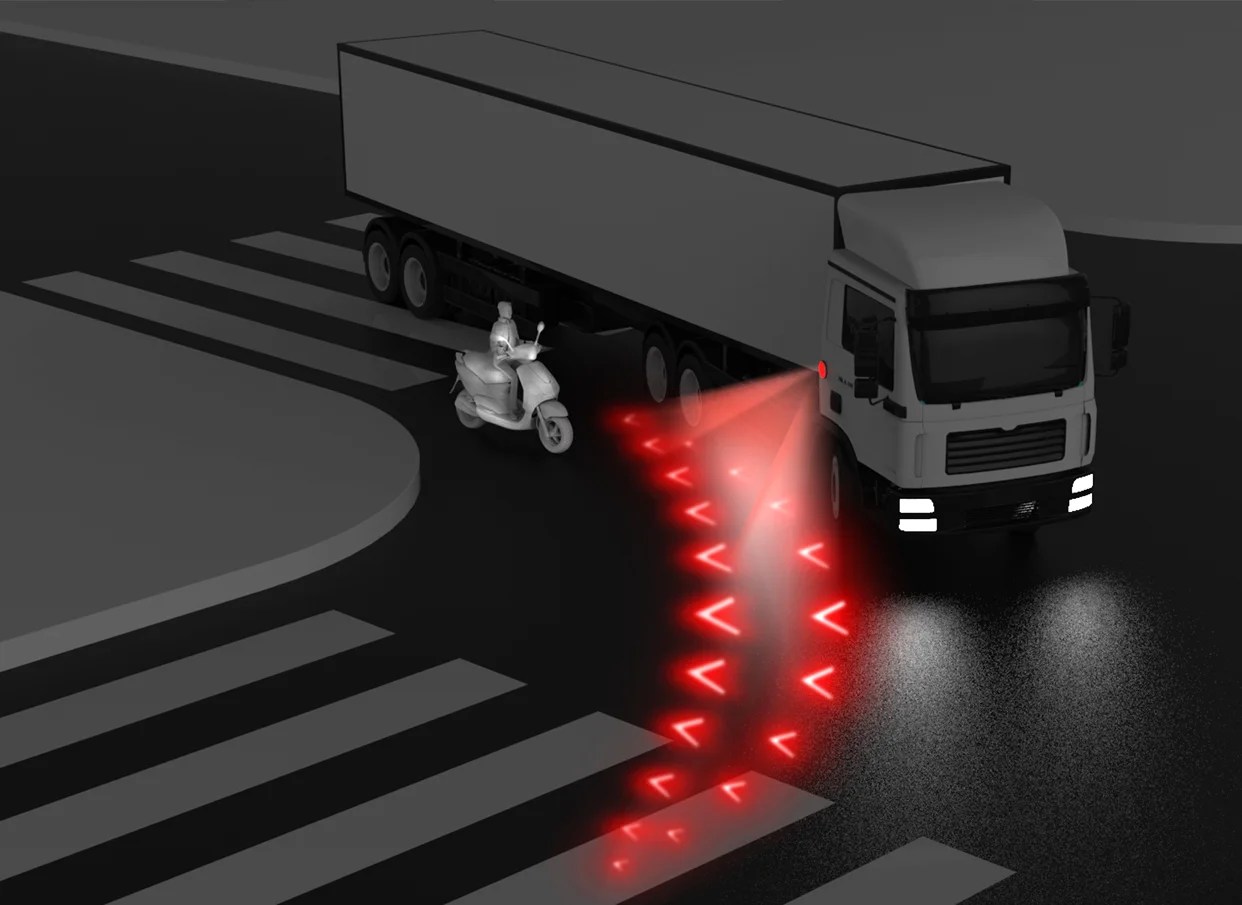 The temperature sensor in the safety turn lamp can detect the heat in the inner wheel region when the vehicle is turning. At the same time, the safety turn lamp starts running to warn passengers this way to avoid danger.