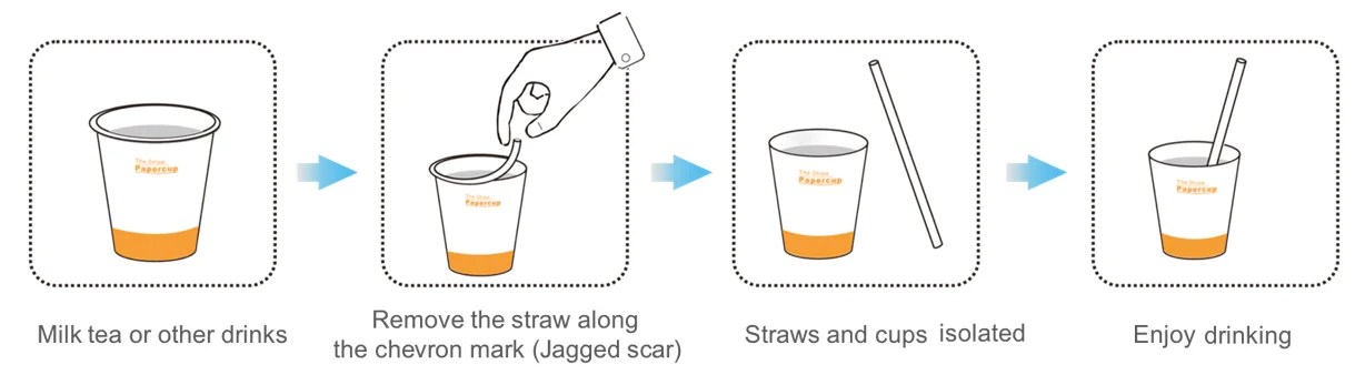 Users can get a paper straw at any time and anywhere from the paper cup.