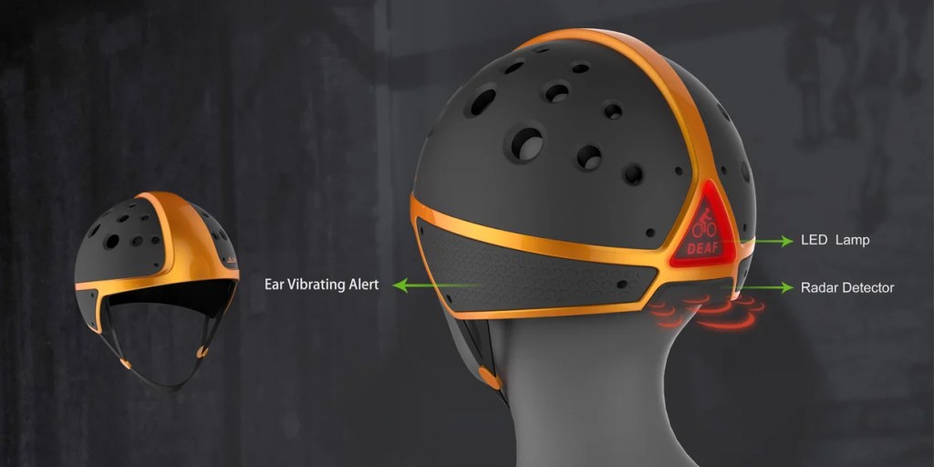 The helmet can offer both active and passive safety properties. It can radically avoids traffic accidents and effectively protects the deaf’s riding safety.