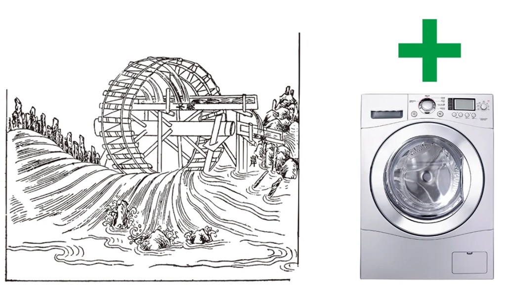 Waterwheel Washer combines the traditional water wheel with the modern spinning washing machine. It helps with the laundry in an economic and zero-carbon manner for people who live near water but do not have an electricity supply.